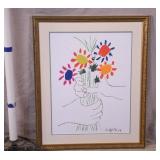 Framed print "Hand with Bouquet" by Picasso; 274-236 - ornate gold frame - 24.5x29.5