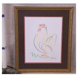 Framed print "Rooster" by Picasso; 274-231 - ornate gold frame - 22x26