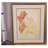 Framed print "Mother & Child" by Picasso; 274-233 - Collection Marina Picasso - gold frame - 24.5x29.5