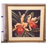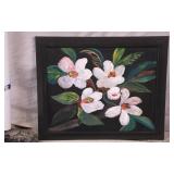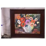 Framed original floral painting on canvas by Anna Sandhu Ray; 274-359 - mahogany frame - 26.5x22