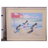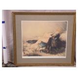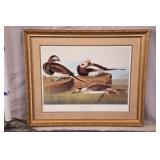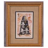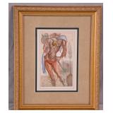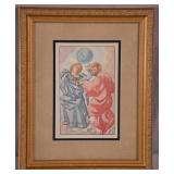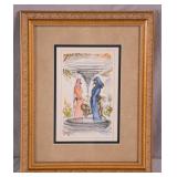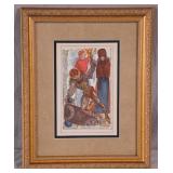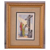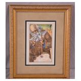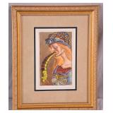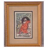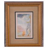 Framed Artist Proof print by Sky Jones; 274-247 - man with 2 doves scene gold frame - artist signed and marked AP - 31.5x26.5