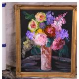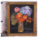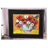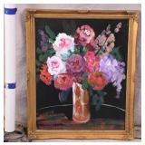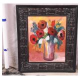 Framed original floral painting on canvas by Anna Sandhu Ray; 274-354 - ornate dark frame - 24.5x28.5