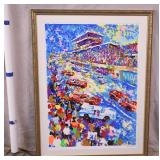 Large framed print by John West; 274-242 - race track scene - artist signed and numbered 126/325 - 29.5x38.5