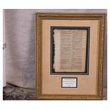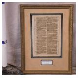 Framed Martin Luther Bible leaf - 1715 edition; 274-380 - gold frame - 16x22