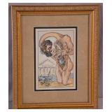 Framed print "The Silk Robe" by Louis Icart; 274-308 - ornate gold frame - 30x27