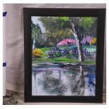 Framed original painting by Anna Sandhu Ray; 274-201 - floral scene with gold frame - 18x21