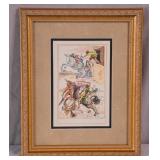 Framed print "Coursing II" by Louis Icart; 274-309 - ornate gold frame - 32.5x23.5
