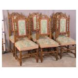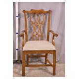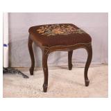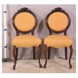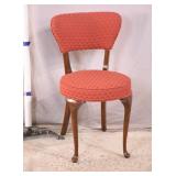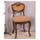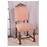 Carved walnut side chair with stretcher base; 155-657 - (fabric is dirty) - 20.5x21x41.5