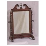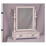 White painted shaving mirror with 2 drawers; 253-172 - turned posts with tilting mirror - (paint as-is) - 19x6.5x22.5