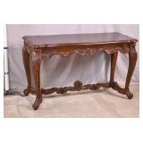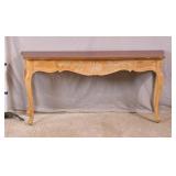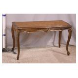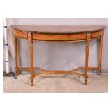Small gold wall mounted console with marbleized mirror top; 74- - 26x10.5x11