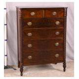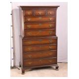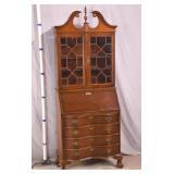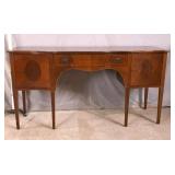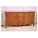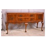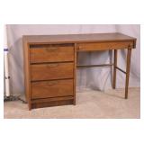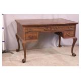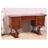 Walnut executive kneehole desk; 737-2111 - 2 slide out boards plus dictation board on front - 2 file drawers - (finish as-is; light scratches in top; missing piece of molding) - 66x36x30