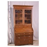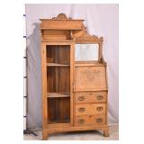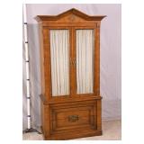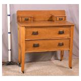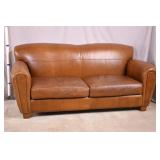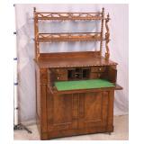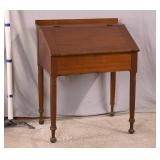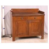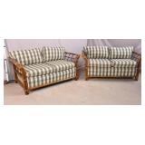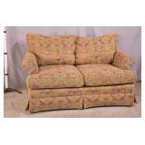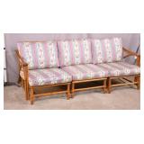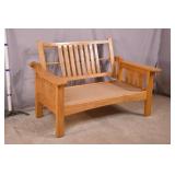 Oak reclining back loveseat; 253-199 - adjustable recline positions - (no cushions; tape on rod - may be broken) - 55.5x37x36