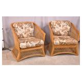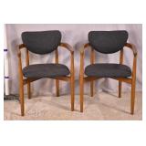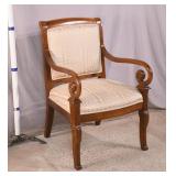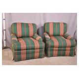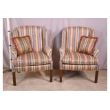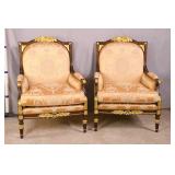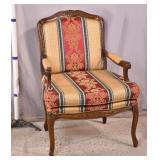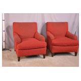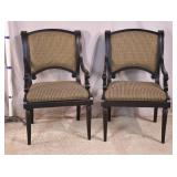 Pair of upholstered arm chairs; 913-160 - (fabric as-is; finish on legs as-is) - 32x37x34
