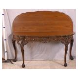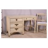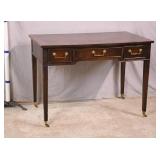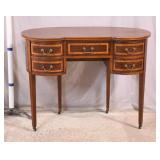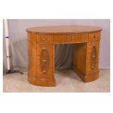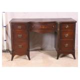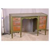 Green kneehole vanity; 253-142 - (missing mirror top; finish as-is; chip in veneer) - 48x18x28.5
