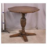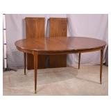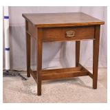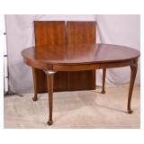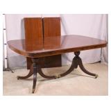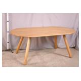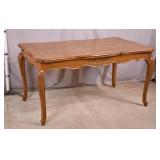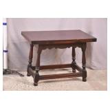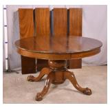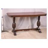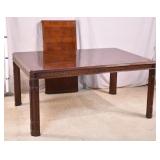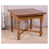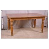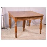 Oak dining table with porcelain casters; 253-178 - (center support legs leans slightly; center of table sags) - 42x42x29