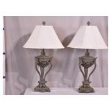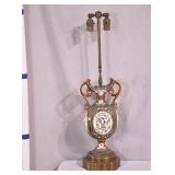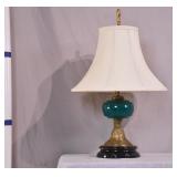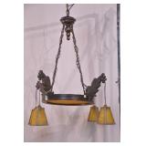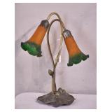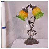 Ornate metal floral lamp with colored glass shades; 253-183 - 2 bulb capacity - 12x9.5x18