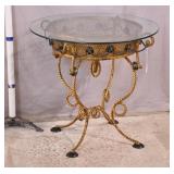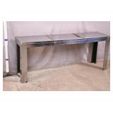Silver metal console table; 737-2150 - (missing rivets in 1 band on top) - 60x16x24.5