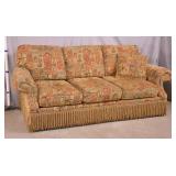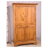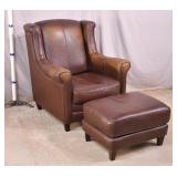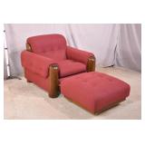 Pine framed arm chair with ottoman; 287-545 - casters on ottoman - (finish as-is; buttons are missing on seat cushion) - 39x40x31.5 chair; 28x29x14 ottoman |