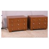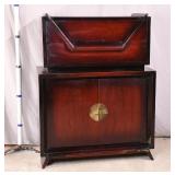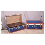 Pair of red, white and blue footlocker trunks; 737-2139 - plastic dividing tray - (1 has spot in finish on front) - 31x17x12.5