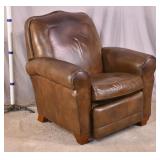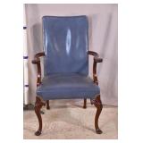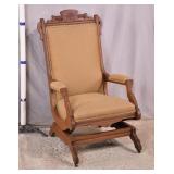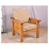 Oak reclining back arm chair; 253-197 - adjustable reclining positions - (fabric as-is) - 32x36x37