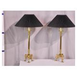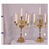 Pair of brass 5 light electric candelabras; 716-243 - (both have broken/missing glass cups on arms) - 11x10x25