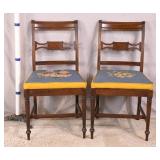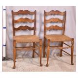 Pair of early ladder back chairs with rush seats; 155-662 - stretcher base - (finish as-is) - 18x17.5x35