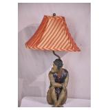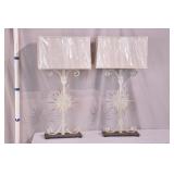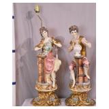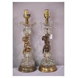 Pair of small glass and metal cherub lamps; 913-135 - (missing prisms; slightly different colors) - 6x6x19.5