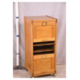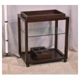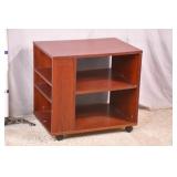 Laminate wood side table with shelves on casters; 253-202 - (finish as-is) - 27.5x19.5x26