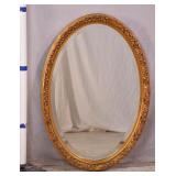 Oval beveled mirror with ornate gold frame; 287-553 - (small black specks in mirror) - 24x34