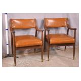 Pair of walnut mid-century open arm chairs; 558-145 - brass toe caps - (exposed screws have been added) - 22.5x23x30.5