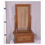 Early walnut single drawer shaving mirror; 74-4187 - tinted swivel mirror - 19x10.5x34