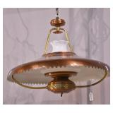Copper and brass electric hanging light with white globe; 253-177 - 23x23x19