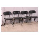 Set of 4 black chairs with metal frames; 55-4912 - wood seat and back - (finish as-is; some seat bolts have been replaced with wrong type) - 18x19x31.5