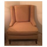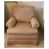 · Pair of Drexel Heritage rolled arm chair in gold fabric