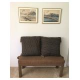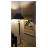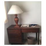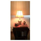 · Pair Craftsman table lamps Asian inspired cast accent bow and fabric shade