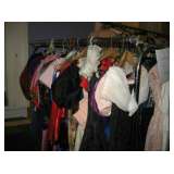 Amazing vintage finds from the 50's through the 00's. The vintage women sizes are small-ish but not all of it. Long formals, Bridal gowns. Short formals. Military jackets, Dresses. Blouses. Suits for ladies and men. And costumes........tons of costumes from simple street clothes adapted for the stage to full out opera costumes. Plus props. Need a volcano??? All sales final. No returns. Cash or credit card. All items as is. Many are in excellent condition. Some less than excellent. Everything is priced to SELL. Bring your tape measure - too much to size. Sunday is Half Price d |