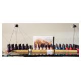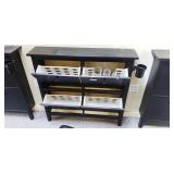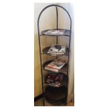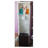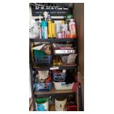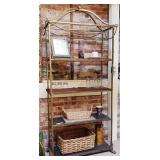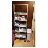 metal shelf with contents |