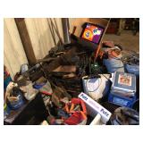 Misc.: Scrap, Office building, Chains for International tractor, Tire chains, Misc. dump truck pumps and ptos, Heavy work bench, Fuel tank~ 275 gal clean, Camper trailer frame, Boxes of bolts, Nuts, Washers, Box of new misc. oil filters, Oil furnaces - working condition, Hydraulic cylinders, Hydraulic pumps air over electric, Large safe, Antique Oil glass jar,