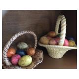 Vintage Primitive Tribal African Collection including Botswana Hand Woven Baskets, Mask, Wooden Carved Animals, Ostrich Eggs.