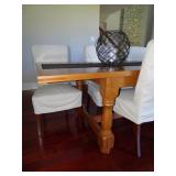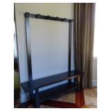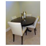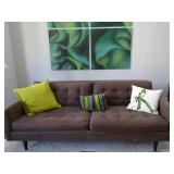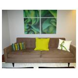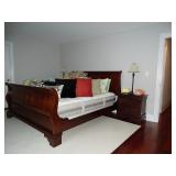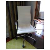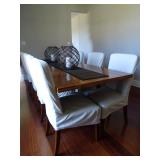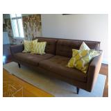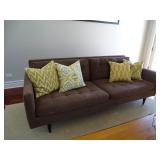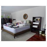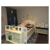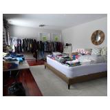 FURNITURE and HOME DECOR: West Elm computer desk and file cabinet, modern white leather desk chair, 2 matching bookshelves. Round modern end table, reproduction MCM Barcelona chair (black), Crate and Barrel metal hall tree/coat rack, West Elm chunky sofa table, CB2 signed Matthew Lew area rug, MCM style dark wood and glass end tables, 2 matching easy chairs, metal table decor, (2) Crate and Barrel Petrie MCM style sofas, West Elm media cabinets, Restoration Hardware reclaimed sideboard, Crate and Barrel dining table with 8 Pottery Barn parsons chairs with slipcovers, 4 counter height barstools, Bauhaus tan sofa, Restoration Hardware Oviedo vintage leather lounge chair, oversize leather ottoman, easy chair, 2 Papasan chairs, oval dining table with 4 off white leather chairs, faux leather storage bench, several toy/bookshelves, table lamps, Bernhardt slipper chairs, King size platform bed, white full size bed, King size sleigh bed with matching tall dresser, short dresser and mirror and nightstands, white 7 drawer dresser, vases, decorative pillows, area rugs, wood wall sculpture, nail wall art, and more.