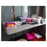 KITCHEN AND DINING: Wine glasses, a few pots and pans, bakeware, water bottles, toaster, some flatware, table mats, table clothes, napkins, napkin rings and more.