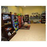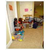 GENERAL: Cleaning products, towels, kids toys, books, CD's, 20x20 FLOR carpet tiles, baskets, candles, Ascend CMT 340 speakers, Denon AVH-3805 home theater receiver, Signed Tom Hanks Toy Story wall art with COA, Nordic Flex, Pro Form Reflex Stp, games puzzles, weights, MP drum set, Vizeo and Panasonic flat screen TV, stuffed animals and more.