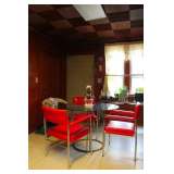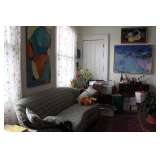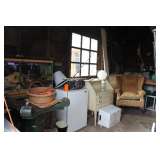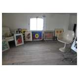 Mid Century Modern: Lamps, Furniture, Art, Paintings, Glass Top Tables, Tulip Chair, and more. Victorian Couch, Chandeliers, Flat File with TableTop for Artist, Oils, Water Colors, Prints, Signed Artwork, Halloween Decorations, Air Conditioners, Computer Desk, Books Old and New, Pottery, China, Dining Room set, 2 Bedroom sets, Side Tables, End Tables, Sofa Tables, Sewing Machines, Buddha Collections, Antique Hardware, Rugs, Kenmore Refrigerator side by side, Microwave, Kitchen pots & pans, Patio set, BBQ's, Fish Tank, Small Fridge, Tools, Ladder,Statues, Philco Radio - stand alone, Canopy Tent, Victorian Shelving, Ceiling Fan - New in Box and lost more.