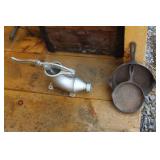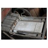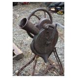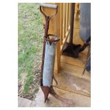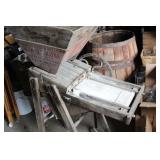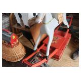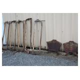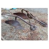 FARM PRIMITIVES & ANTIQUES: Walking plows Horse-drawn cultivators Wooden block planes Cream separator Milk cans Crocks Huge farm scalding kettle Farm advertising signs Large Homelite chain saw sign Butcher block top Simplex railroad jack Numerous farm bags w/advertising Hand truck Old storage truck Sausage stuffer Oakley antique furnace Antique bicycle Potato grader Antique rocking horse Old baby buggy & stroller Corn sheller Bean sorter Old Columbia girl’s bike