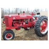 FARM EQUIPMENT: Farmall M (nfe 12 volt) Farmall 100 International 7 disk International #82F trailer plow 3 pt. 2 bottom plow 16” 1 bottom plow for Farmall 100 Platform scales Drag 14’ PF utility trailer “like new” Trailer sprayer