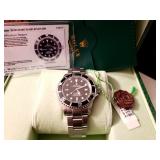 Small sampling of estate jewelry: Rolex Sea Dweller 16600 with Rolex Box and WGS Watch ID report, Rolex Submariner 16610 Red dial with Diamond hour markers and Rolex box, Blue Nile 18k White Gold Diamond and Blue Sapphire Tennis Bracelet, 14k White Gold Diamond 0.25 ct. pear-shape pendant, Platinum Diamond Circular Pendant with Marquis/Round Diamonds, 14k Yellow Gold and Diamond Heart Pendant, 18k White Gold Diamond 0.30 ct. Pendant, Tacori Platinum Diamond ring, Sapphire and Diamond Ring