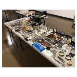 * 25% OFF PRO-AUDIO Sterling Silver and Watches: Large Selection Of Sterling Silver Jewelry, Vintage and Antique Watches Including: TIMEX, Sterling Silver Candlestick Holders, Sterling Bowl, Sterling Cup, Sterling Silverware Sets, Sterling Silver Collectibles, Sterling Silver Belt Buckles on Leather Belts and much more… Electronics, Pro Audio and Musical Instruments: Huge Selection of Electronics and Pro Audio Equipment, Mostly New Or Lightly Used Including, Like New 2011 Fender American Deluxe Precision Bass, JBL JRX225 2000W Speakers, Behringer Digital Mixer, Mackie Mixer, BBE Sound Sonic Maximizer, NEW Roland CB120XL Cube Bass Amp, Klipsch Surround Sound System New In Boxes, Audio Recording Rack Computer, Huge Selection Of Audio and Instrument Cables, Marshall Bluetooth Speaker, Onkyo Receiver, Pro Turntable and much more… Photography Equipment: Selection Of Photo and Video Equipment Including Digital and Analog Nikon Cameras, Go Pro, Sony, Panasonic and more. Kitchen: Crate and Barrel Dining Set, Vintage Fiesta Decanter, Fine China, Floral Dining Sets, Mugs, Vintage Dutch Oven, Cabela's Cast Iron Dutch Oven. Portable Cast Iron Grill, Kitchen-Aid Mixer, Juicer, Stainless Steel Camping Cookware and much more… Decor/Furnishings: Netsuke-Like Object Collection, Mid Century Sterling Foil Silver Buddha Head, Mid Century DAUM Crystal Optical Bowl, Brass Leaf Plate, Pottery, Art Glass, Brass Miniature Cannon Replicas, Vintage Signs, Mid Century Folding Chairs, Wood Tree Carvings, Nice Selection Of Fine Art Originals, Prints, Vintage Chemistry Pyrex and much more… Vintage Paper: Hundreds of Vintage Sci-Fi Paperback Books, Vintage Travel Brochures, ARAMCO Paperwork, Maps and Collectibles, Girl Scout Yearbooks, Pan Am Collectibles, Vintage Luggage Tags, Vintage Train Timetable, Huge Collection Of Vintage Photo Slides, Photos and 8mm Film: Including a Selection Of Vintage Adult 8mm films and much more. Clothes: Motorcycle Gear, Jackets and Helmets, Snow Boots, Vintage Clothes Including Vintage St. Johns, Large Selection Of Vintage Caps, Costumes Worn By Motown Artists and much more… Tools, Garden: Large Selection of Vintage and Modern Tools, Air Compressor, Snow Blowers, Gas Generator, Pressure Washers, Ladders, Truck Ramps, Tool Boxes, Hand Tools and much more... Please come in through Goodrich Entrance Friday, April 5th 10-4pm |