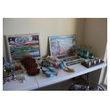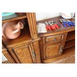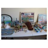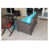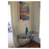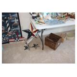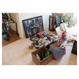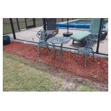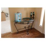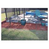Patio Furniture wrought iron 3 pc set wrought iron benches yard art entry table with mirror Wrought iron shelving unit with glass shelves queen Bed Espresso color Queen mattress and boxspring leather recliner 2 Curio cabinets dining table with 6 coaster chairs all wood TV wall unit 60 inch TV King wrought iron HBD/FTB rails coastal hand painted nightstands with matching bench table storage cabinet sitting chair accent furniture pictures décor wine frig ice maker electric fireplace (2) check back for updated pictures and description