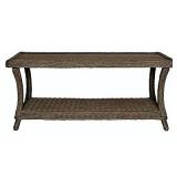 Home Decorators Collection Brighton Cove Faux Patio Wood Coffee Table. Place this patio coffee table between 2 comfy chairs or in front of a wicker sofa to create a cozy outdoor retreat. The slatted aluminum top has the look of wood NEW in Retail Packaging. Please Preview. Retail $399.99<24> |