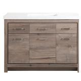 Virtu USA Zola 48 in. W Bath Vanity in White with Ceramic Vanity Top in Slim White Ceramic with Square Basin. The Zola bathroom vanity set features a sleek contemporary design with abundant storage. The vanity offers two doors and seven storage drawers. The Zola is equipped with concealed soft closing door hinges and metal ball bearing drawer slides. The cabinet is constructed with solid wood. Simple and effective, the Zola vanity is a perfect choice for any bathroom design. Virtu USA has taken the initiative in changing the vanity industry by adding soft closing doors and drawers to their entire product line. NEW in Retail Packaging. Please Preview. Retail $1106.43<162>
